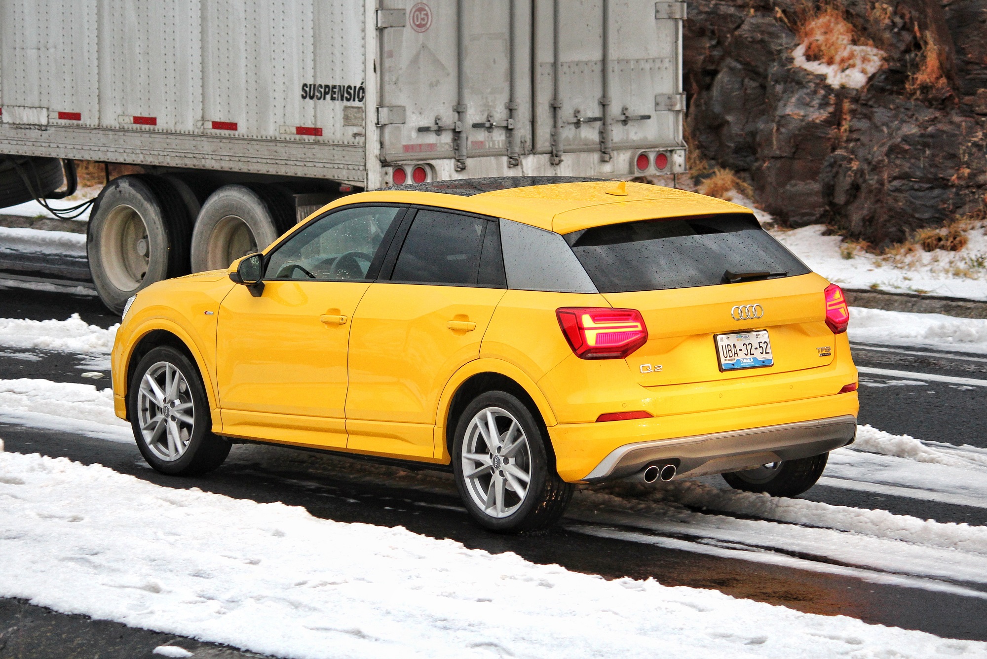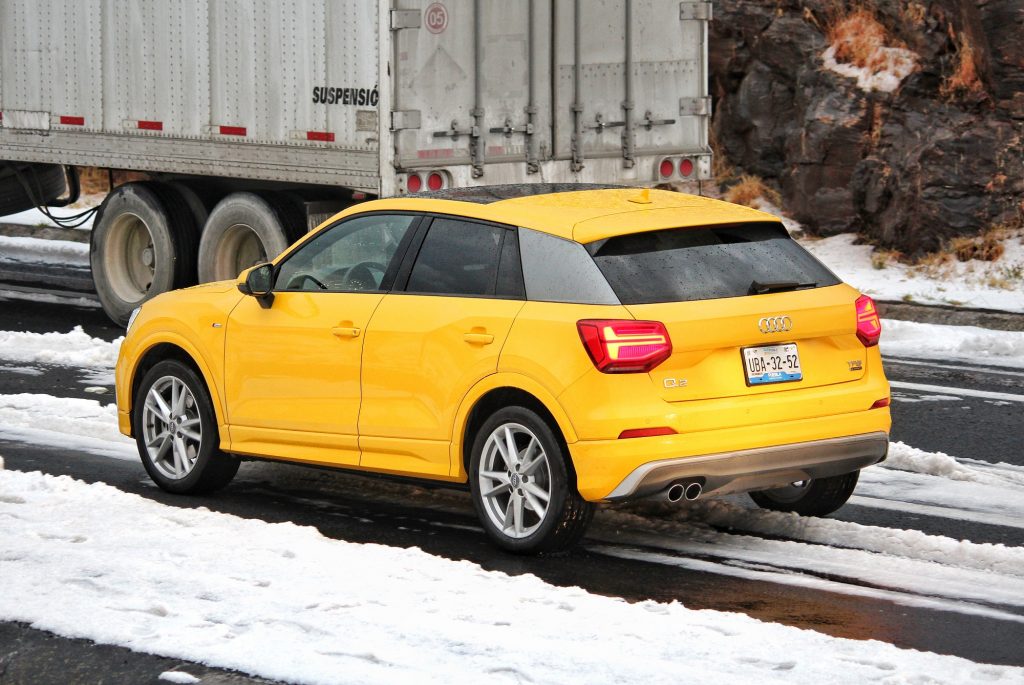 Viéndolo desde el exterior, este Audi Q2 es el-menos-Audi que existe actualmente, la parrilla, la fascia delantera y las calaveras son distintas a lo visto en otros modelos como Q3 y Q5 con los cuales se llega a asemejar pero no es tan parecido como lo son éstos dos entre sí. Tal vez lo diferente que se llega a ver este SUV es parte del encanto que hace voltear miradas, o también pudo haber sido por el llamativo color amarillo de nuestra unidad de prueba.