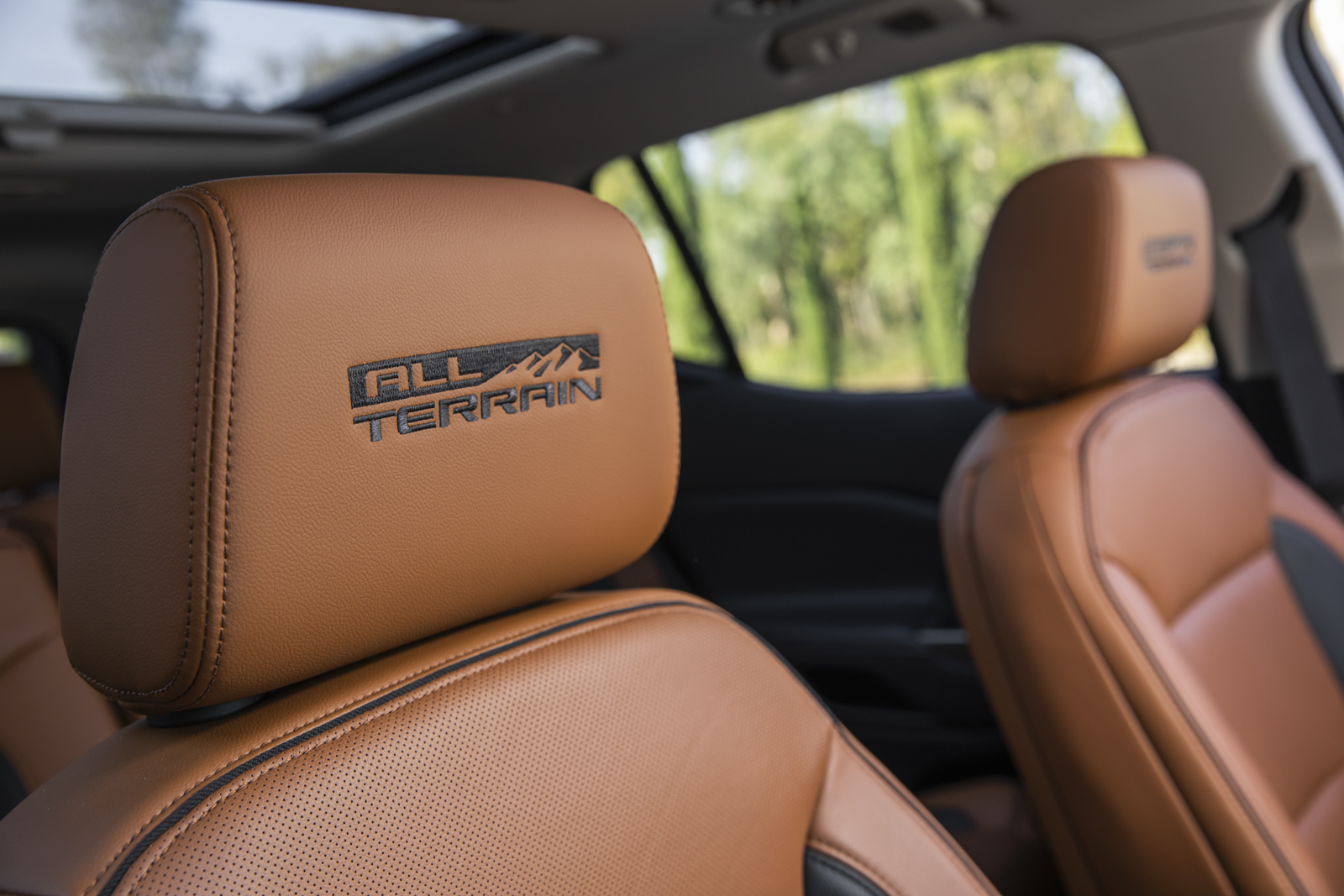 En el interior se tienen 3 filas de asientos y capacidad para 7 pasajeros, los asientos delanteros suman unas insignias All Terrain bordadas en las cabeceras y el sistema de infotenimiento cuenta con Android Auto, CarPlay y sonido Bosé con 8 bocinas, subwoofer y amplificador.