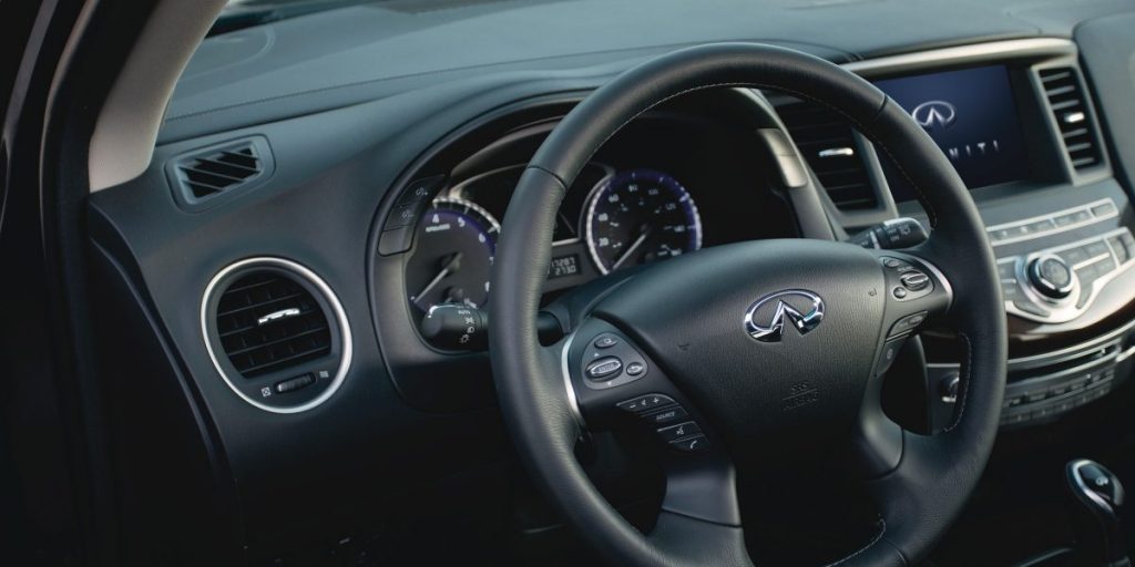 En el interior se respira un aire de buen gusto y correcta combinación de texturas, colores y materiales, sin embargo detectamos algunos ruidos interiores cuando la probamos en terracería lo cual nos recordó, precisamente al Nissan Pathfinder que también presentó este detalle cuando lo probamos. Nada grave pero sí a tener en cuenta cuando se trata de un producto Infiniti.