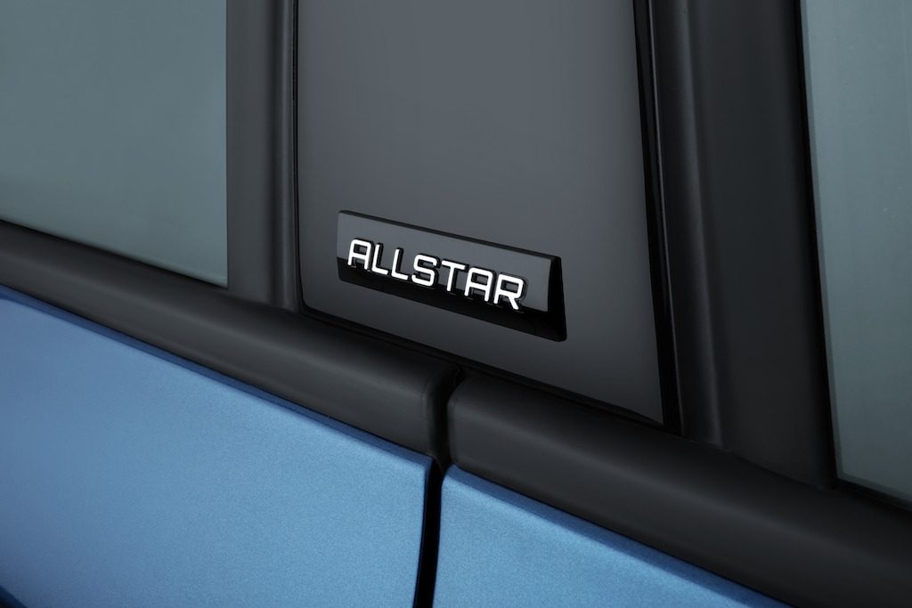 El equipamiento especial comienza en el exterior con la incorporación de rines tipo Linas de 15″, y placa ALLSTAR colocada en el poste B. En el interior se tienen vestiduras de dos tonos Pentastripe con consturas café, insertos en plata mate alrededor del sistema de audio y de las salidas de aire acondicionado, pedales de aluminio cepillado y embellecedores de estribos ALLSTAR.