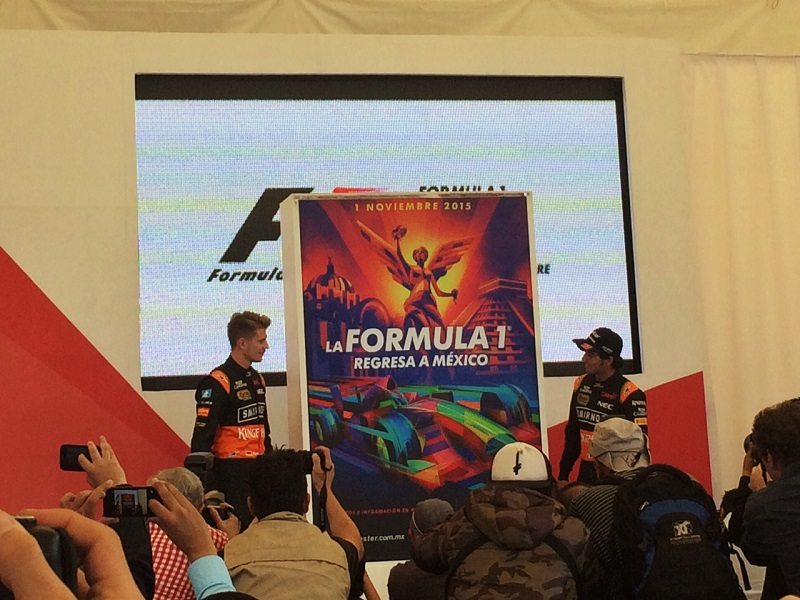 Justo después de los anuncios por parte de la constructora y gente del Autódromo, Sergio Pérez y Nico Hülkenberg, pilotos del Sahara Force India Team se dieron cita para develar la imagen oficial del Gran Premio de México 2015.